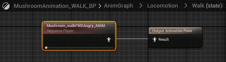This shows the Walk state plays the Walk (forward, with an angry face) Animation Sequence. The Idle state plays a Taunt Animation Sequence because I liked that one better than the idle animation.