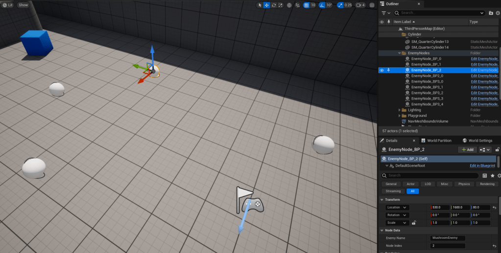 I also created an AEnemyNode class that will be used to mark locations for the enemy to navigate on its path.