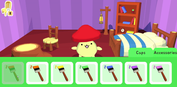 It is a simulation game where the player takes care of a cute little mushroom friend by playing with it and decorating its mush house. The Mush Rush minigame is a rhythm-based runner where the player has to move to the beat to avoid obstacles and collect coins and reach the end of the song before the BEATle catches it.