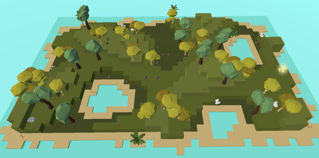 - Programmed a terrain generation algorithm using Perlin noise to create unique islands for the player to explore.